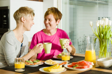 “We are together,” I mouth to the woman standing at the door wearing a down vest and glasses. I gesture wildly toward Pam and our two girls who…