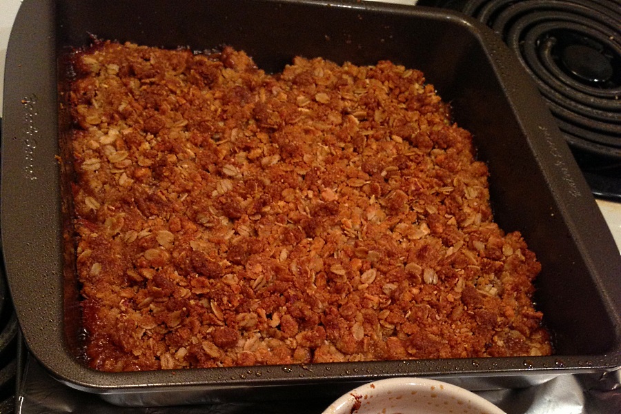 After dinner parties, if half your friends flake off, all “Oh God no, I’m so full, no dessert for me please,” you’re doing it wrong. And by doing it wrong I mean you need to slide a bowl of boozy fruit crisp in front of them with a fork and a look that says “Trust me – shut the fuck up and eat.”