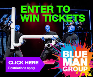 We have a FAMILY PACK of tickets to ANY Blue Man Group Show in the USA. If you are the winner of these 4 tickets you can attend any show in New York, Boston, Chicago, Orland, Las Vegas OR ANY of their North American Tour Dates.