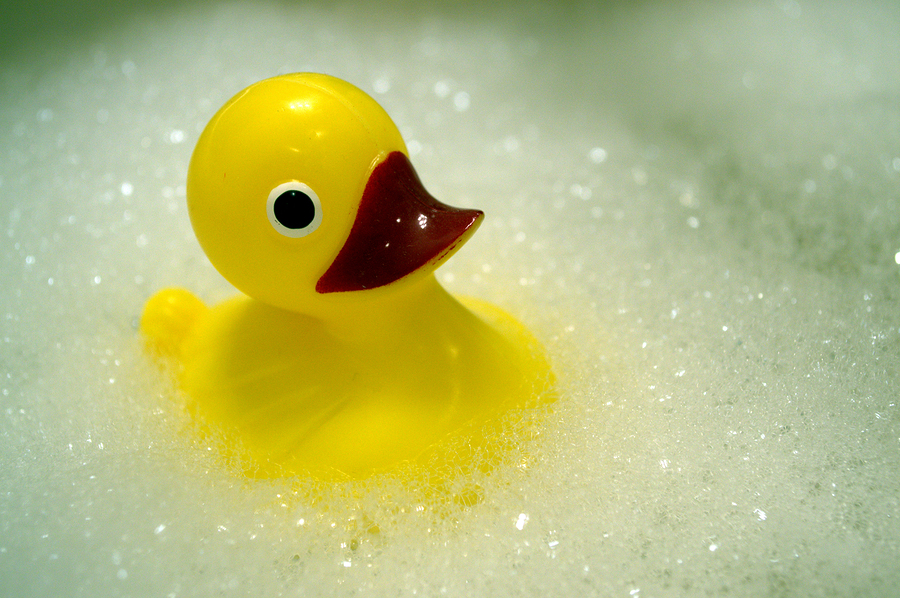 I was SO not the Martha Stewart type that was going to poke around in those damn squeakers with a toothpick after grossness, and my kids were OCD for a while about their little floating ducks and frogs. Once they hit the age where they no longer cared, those things hit the trash faster than your toddler exiting a poop-contaminated tub. >.<
