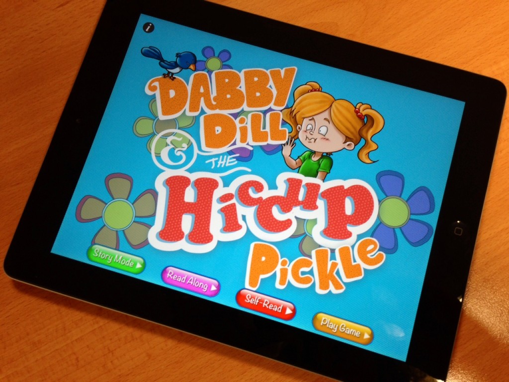 The app is called Dabby Dill and the HICCUP Pickle. Just the sort of silly name that parents hate but kids love! The app tells the story of little Dabby Dill and her terrible case of the hiccups. You can choose from several options – a narrated version, a read-along version or read on your own. On nights when I’m full of energy, I can use it just like a picture book. On nights when my reserves are running towards empty, I can select the narrated version instead.